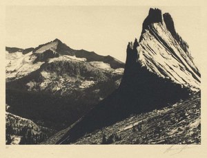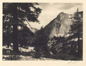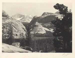 The influence of Ansel Adams on photography is immeasurable, and his long career as photographer, teacher, conservationist, and writer is legendary. His visionary belief in the redemptive beauty of wilderness was expressed in grand images that have popularized art photography among the American public. Adams was born in San Francisco, and trained as a musician; his interest in photography was catalyzed when he met Paul Strand in 1930. In 1932, with Imogen Cunningham, Edward Weston, and others, Adams founded the group f/64, which promoted use of large-format view cameras, small lens apertures, and contact printing. Adams developed this purist approach into the zone system, a controlled method of determining exposure and development. His deep respect for the grandeur of landscape motivated a lifelong involvement in conservation, which he advocated through photographic books and active membership in the Sierra Club.